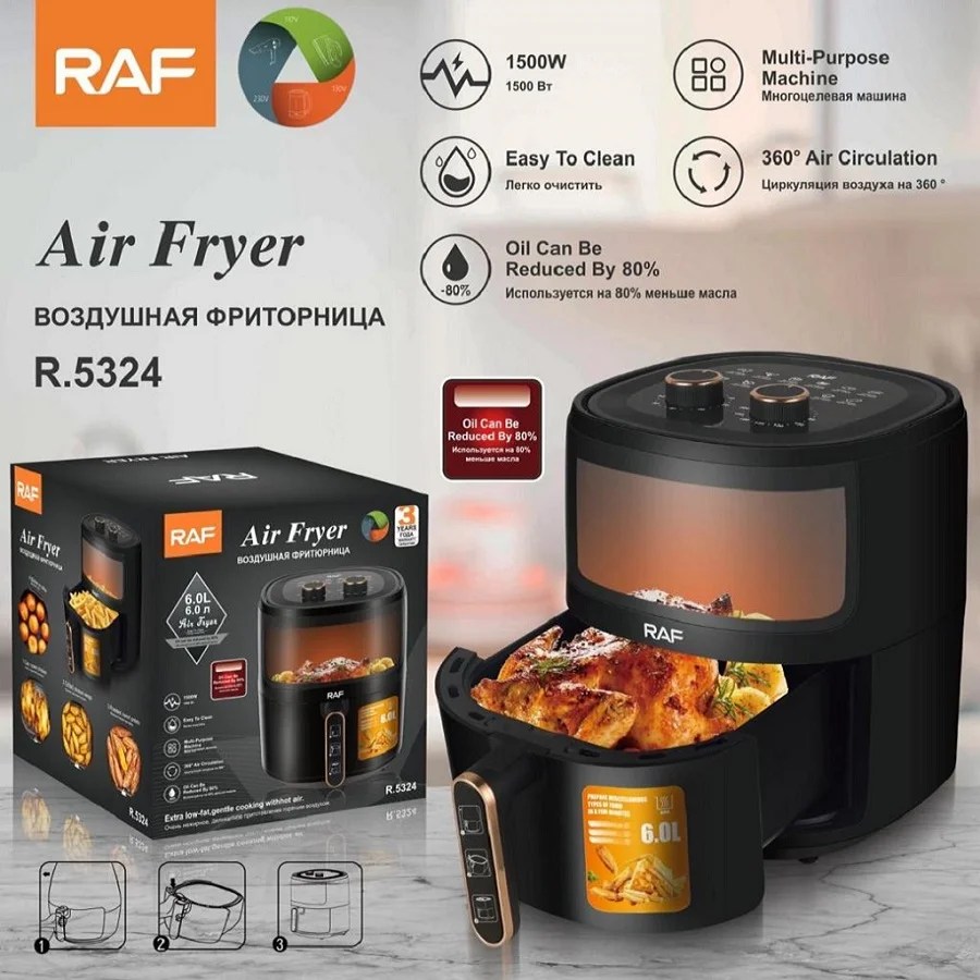 6L 1500W RAF Electric Air fryer Automatic Deep fryer without oil Air frying machine Deep fat fryer for home fries