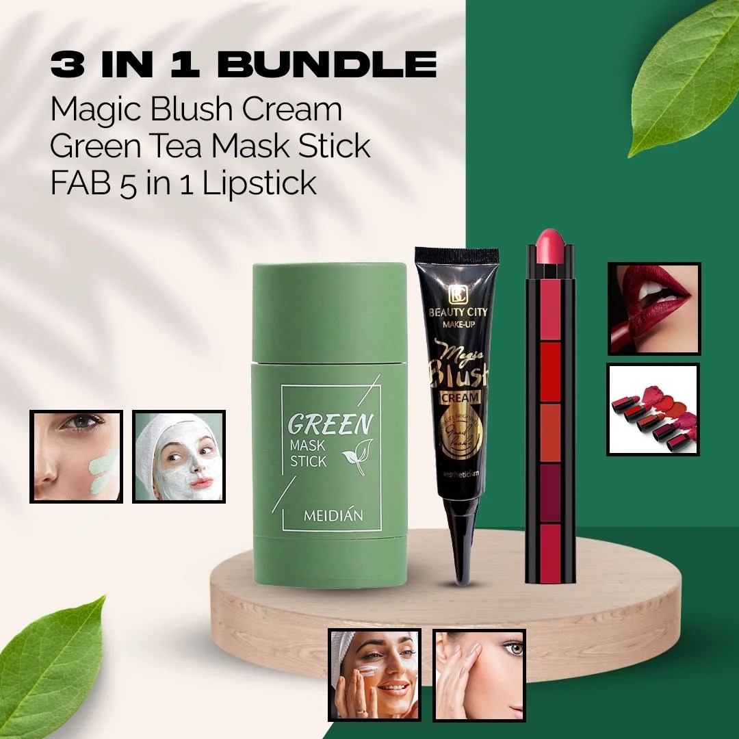 3in1 Green Mask Lipstick & Blush Cream Bundle